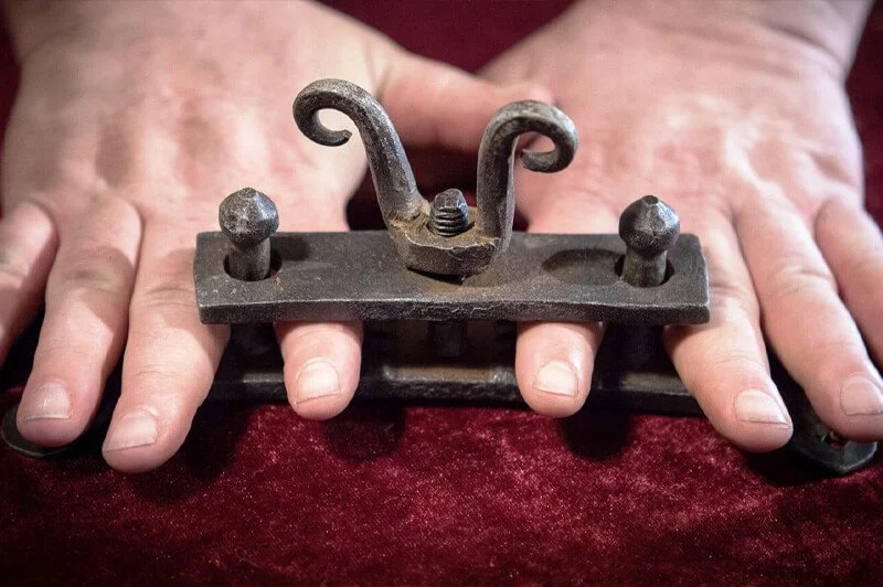 Thumbscrews - one of the devices used for witch torture. Small, but deadly. Oftentimes, you only needed to use them once. The pain was so severe that when the victim was faced with being subject to the thumbscrews again, or confessing a crime, they chose the latter, because the memory of the pain was worse than the pain itself.